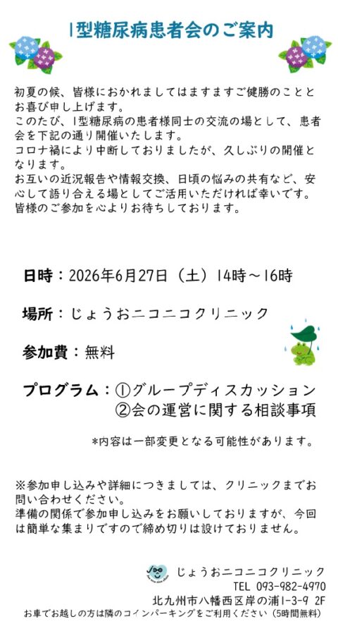 ニコクリで1型糖尿病患者会を開催することになりました。